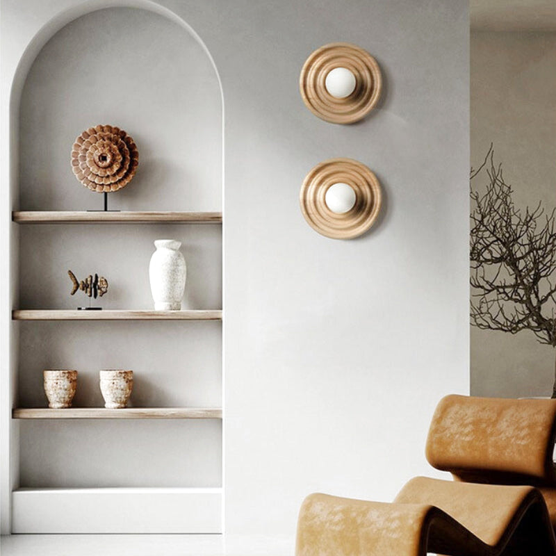 Applique Murale Ronde Bois pour Ambiance Éclairée et Intime